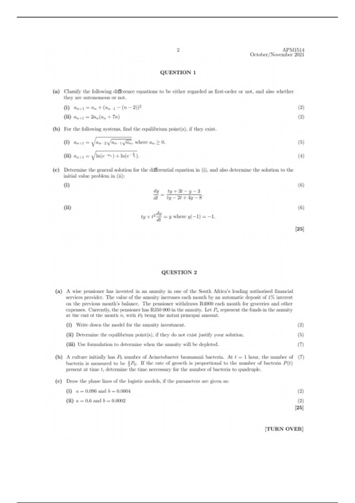 APM Exam Nov with solutions (UNISA)