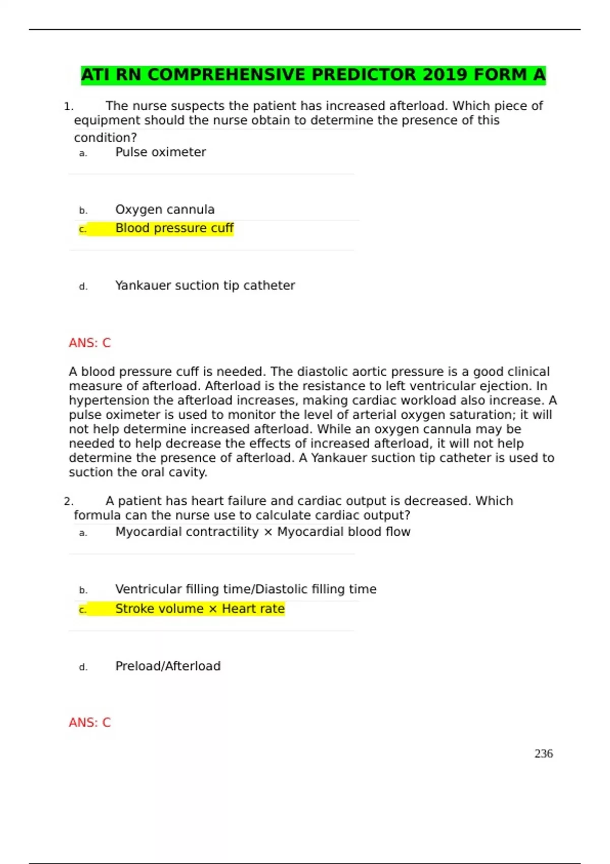 ATI RN COMPREHENSIVE PREDICTOR 2019 FORM A