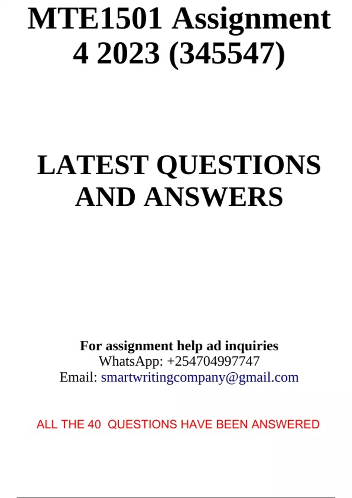 This assignment covers units 1-4 of MTE 1501, containing the following contents: