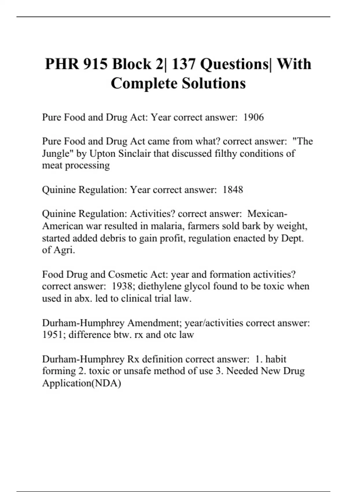 PHR 915 Block 2| 137 Questions| With Complete Solutions