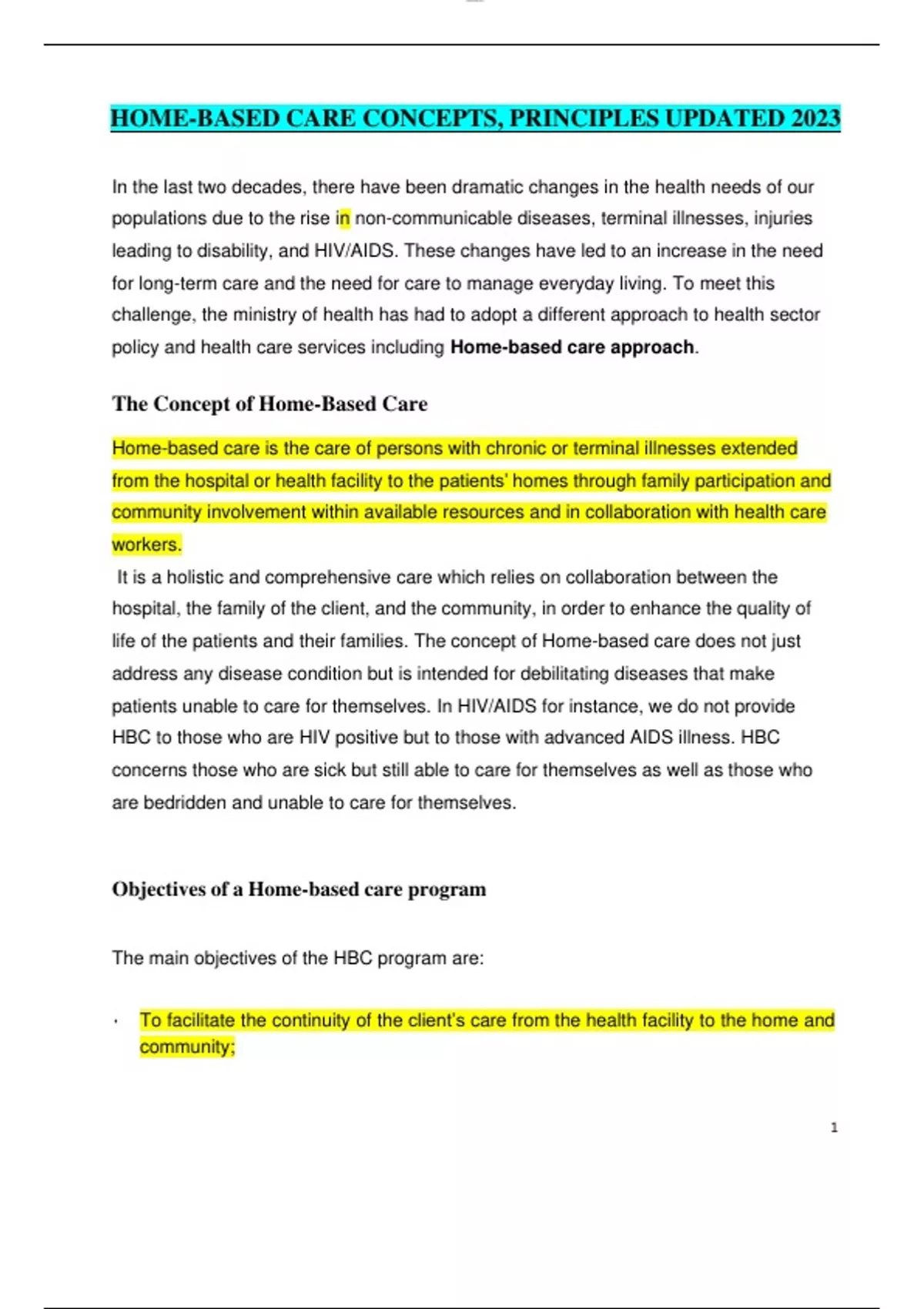 Summary HOME-BASED CARE CONCEPTS, PRINCIPLES UPDATED 2023
