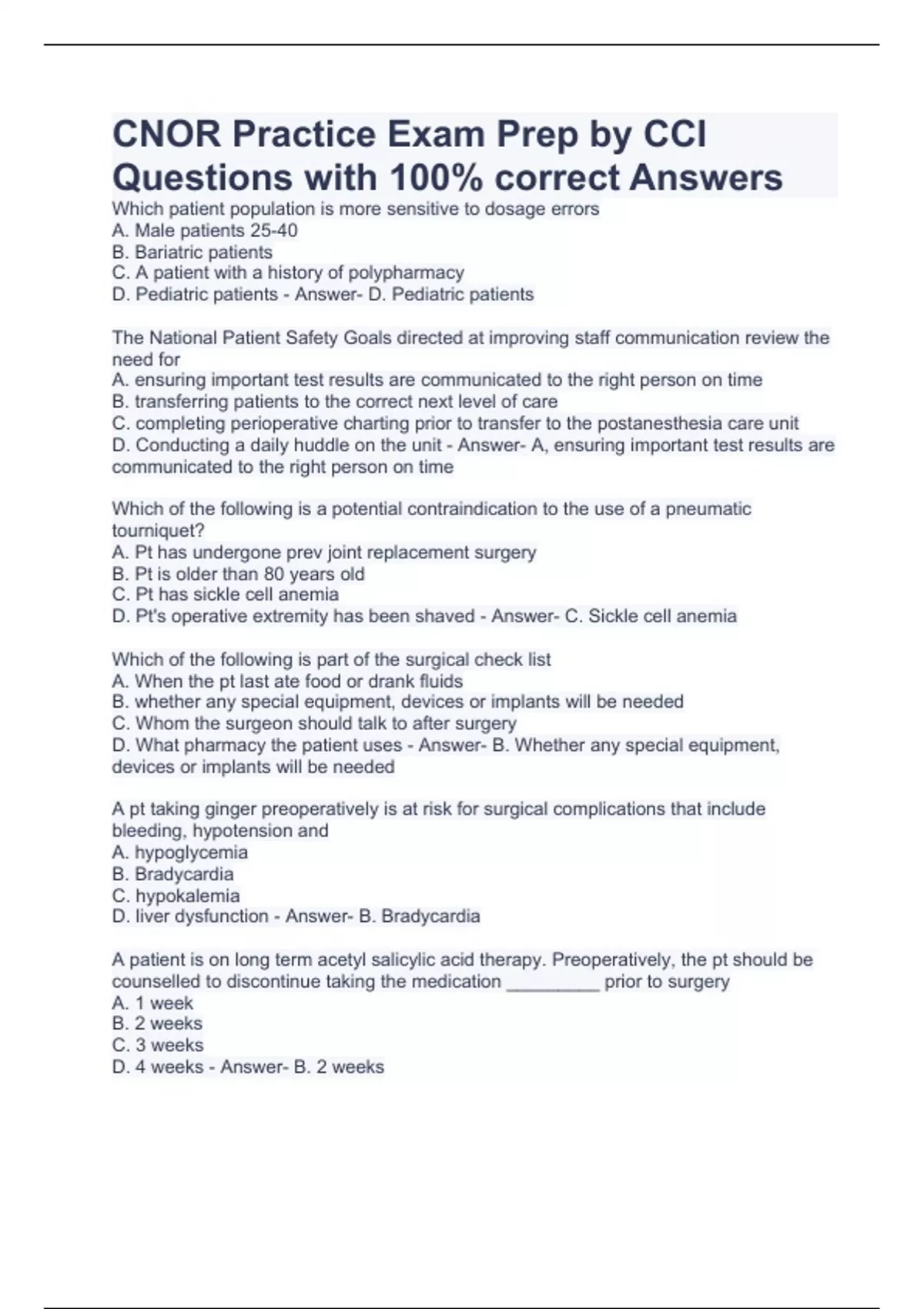 CNOR Practice Exam Prep by CCI Questions with 100% correct Answers