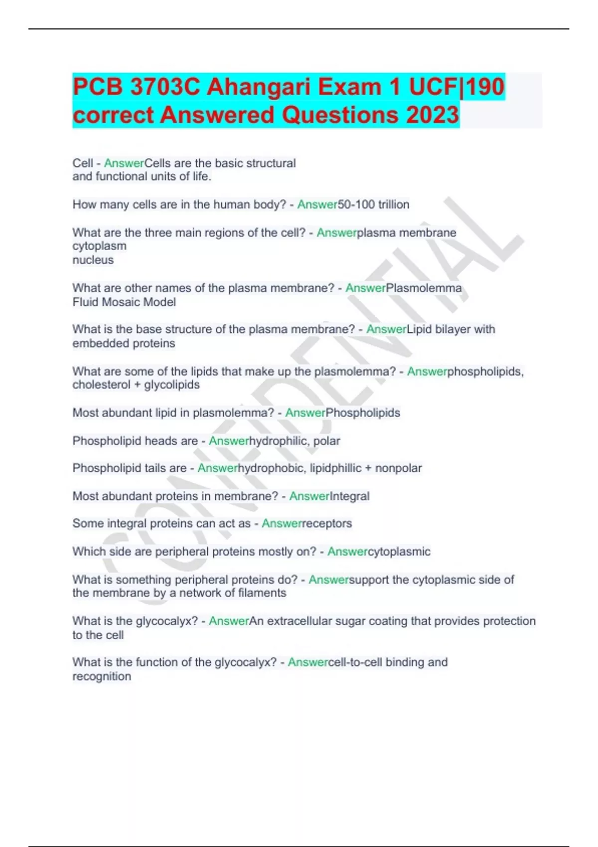 PCB 3703C Ahangari Exam 1 UCF|190 correct Answered Questions.PCB 3703C Ahangari Exam 1 UCF|190 correct Answered Questions.PCB 3703C Ahangari Exam 1 UCF|190 correct Answered Questions.PCB 3703C Ahangari Exam 1 UCF|190 correct Answered Questions.