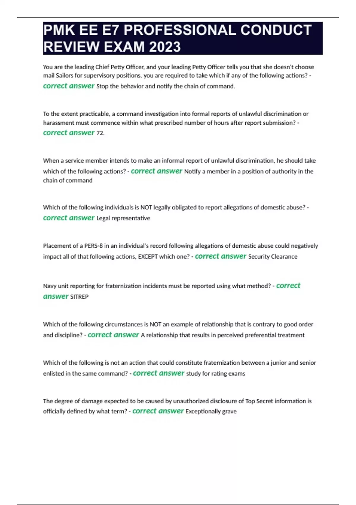 PMK EE E7 PROFESSIONAL CONDUCT REVIEW EXAM 2023