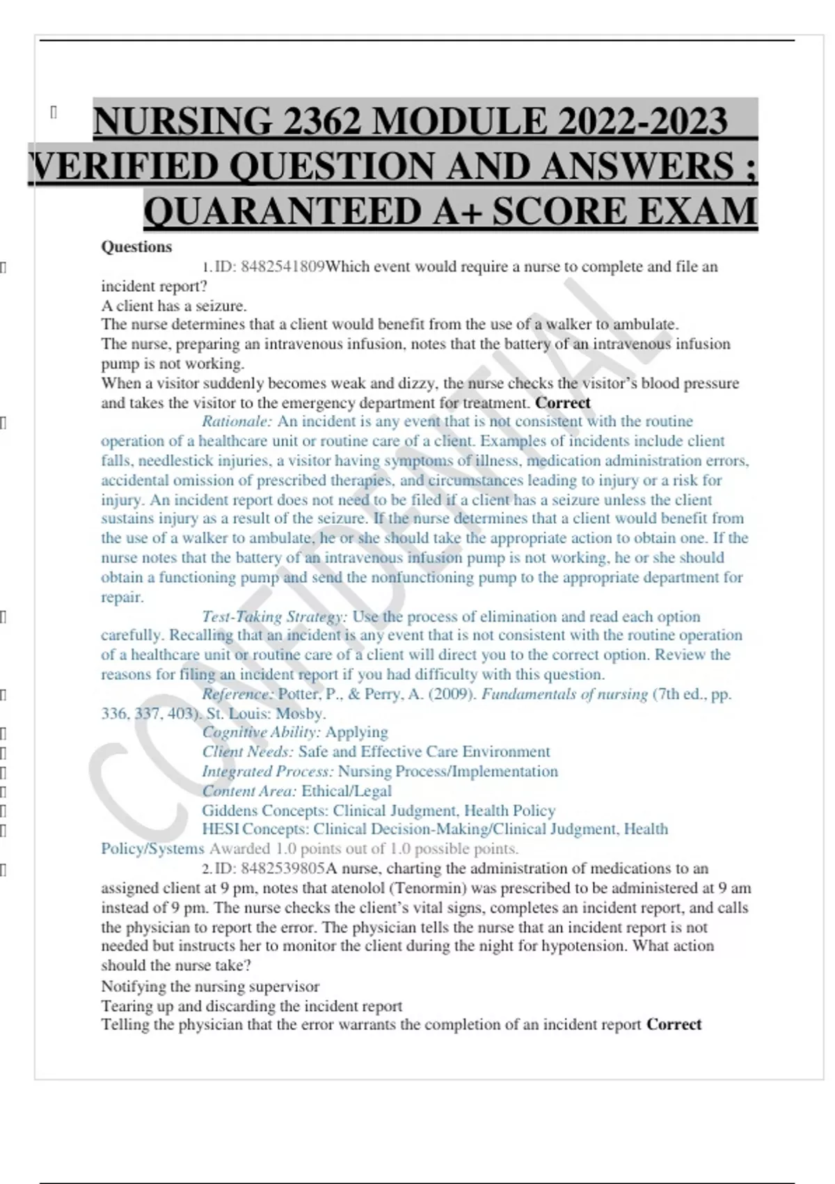 - NURSING 2362 MODULE 2022-2023 VERIFIED QUESTION A