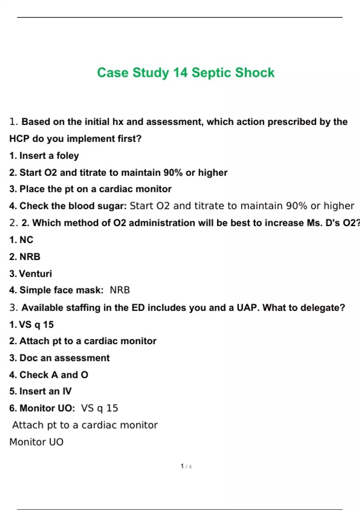 nur 210 case study 14 septic shock with complete