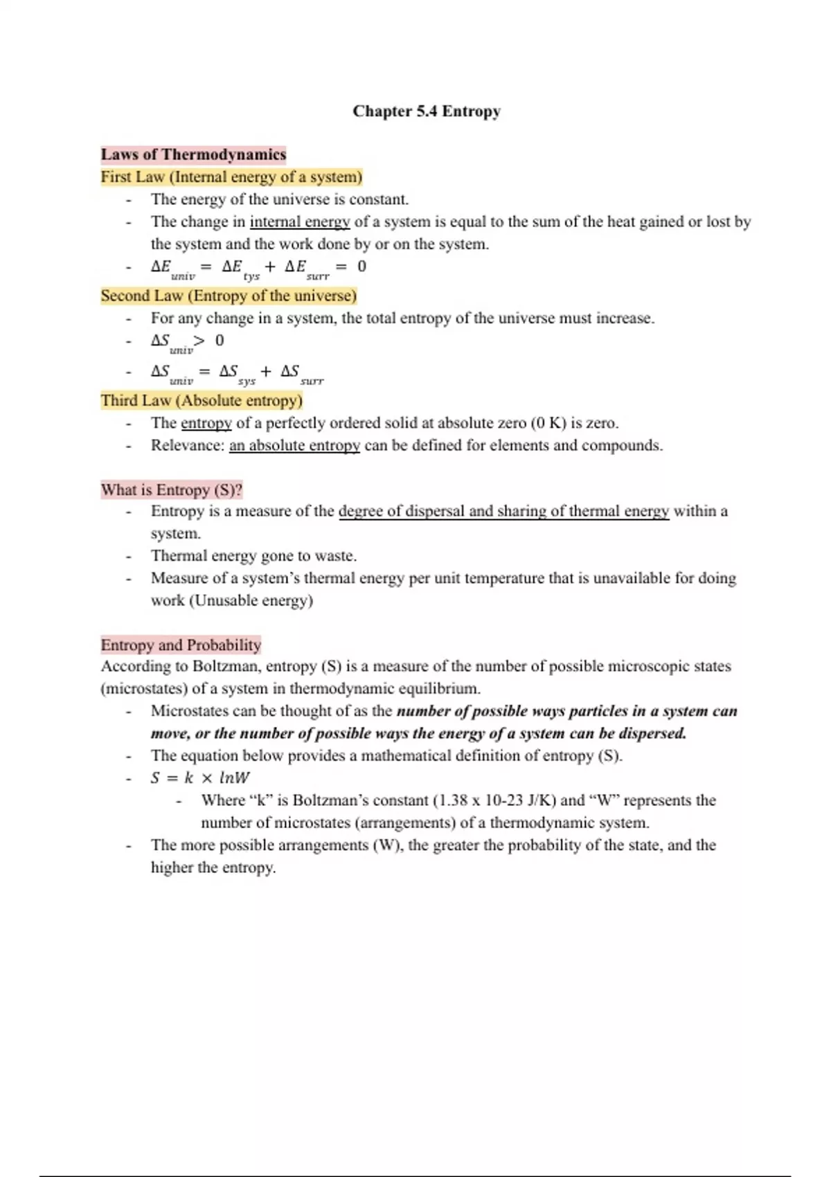 This is an introduction to entropy and how it relates to each law of thermodynamics,.