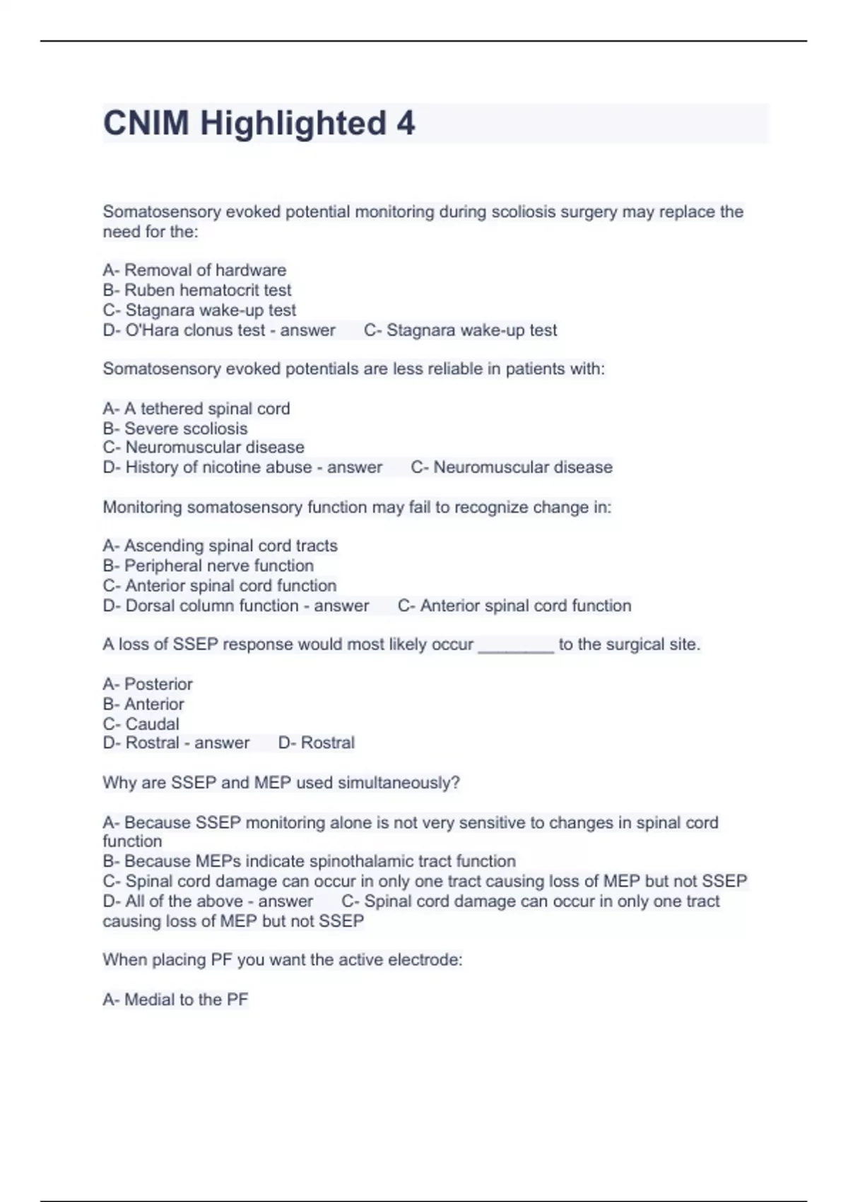 CNIM Highlighted 4 Questions with correct Answers 2023