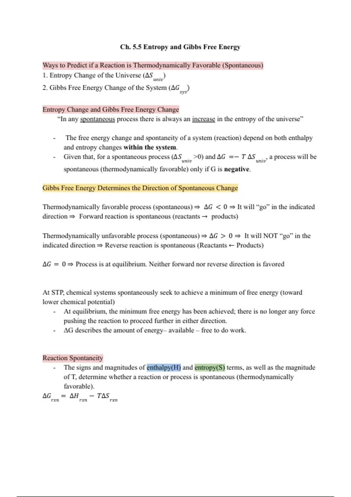 Ch. 5.5 Entropy and Gibbs Free Energy