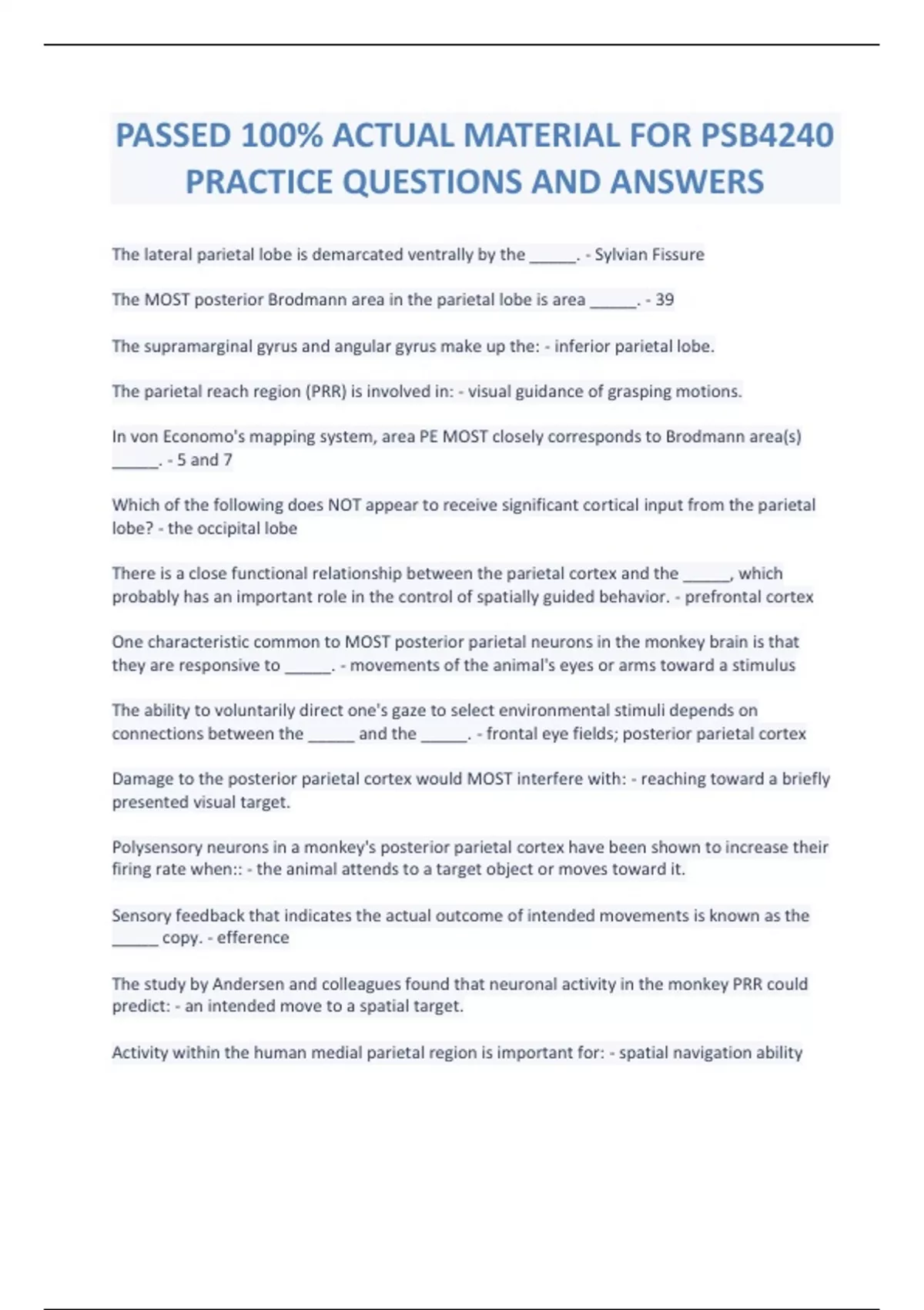 PASSED 100% ACTUAL MATERIAL FOR PSB4240 PRACTICE QUESTIONS AND ANSWERS