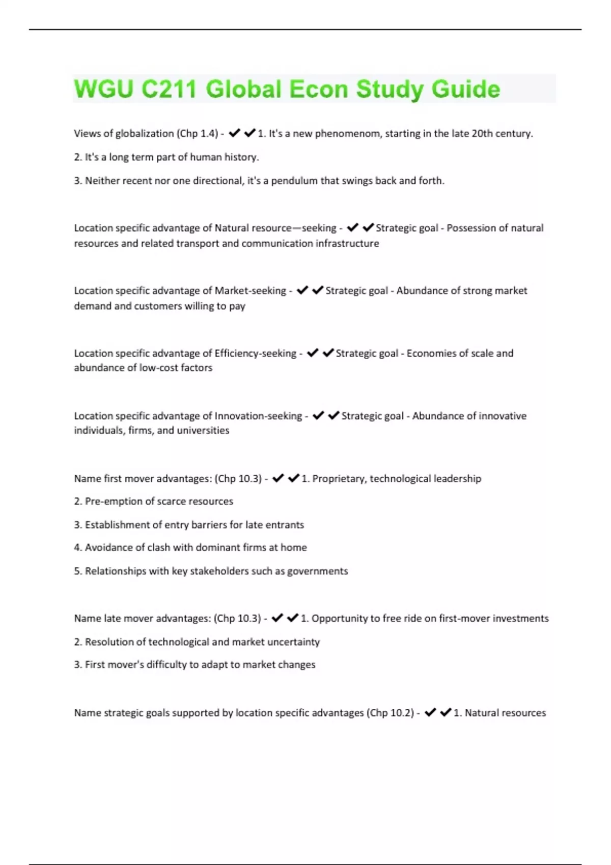 WGU C211 Global Study Guide With Correct Answers Graded A+