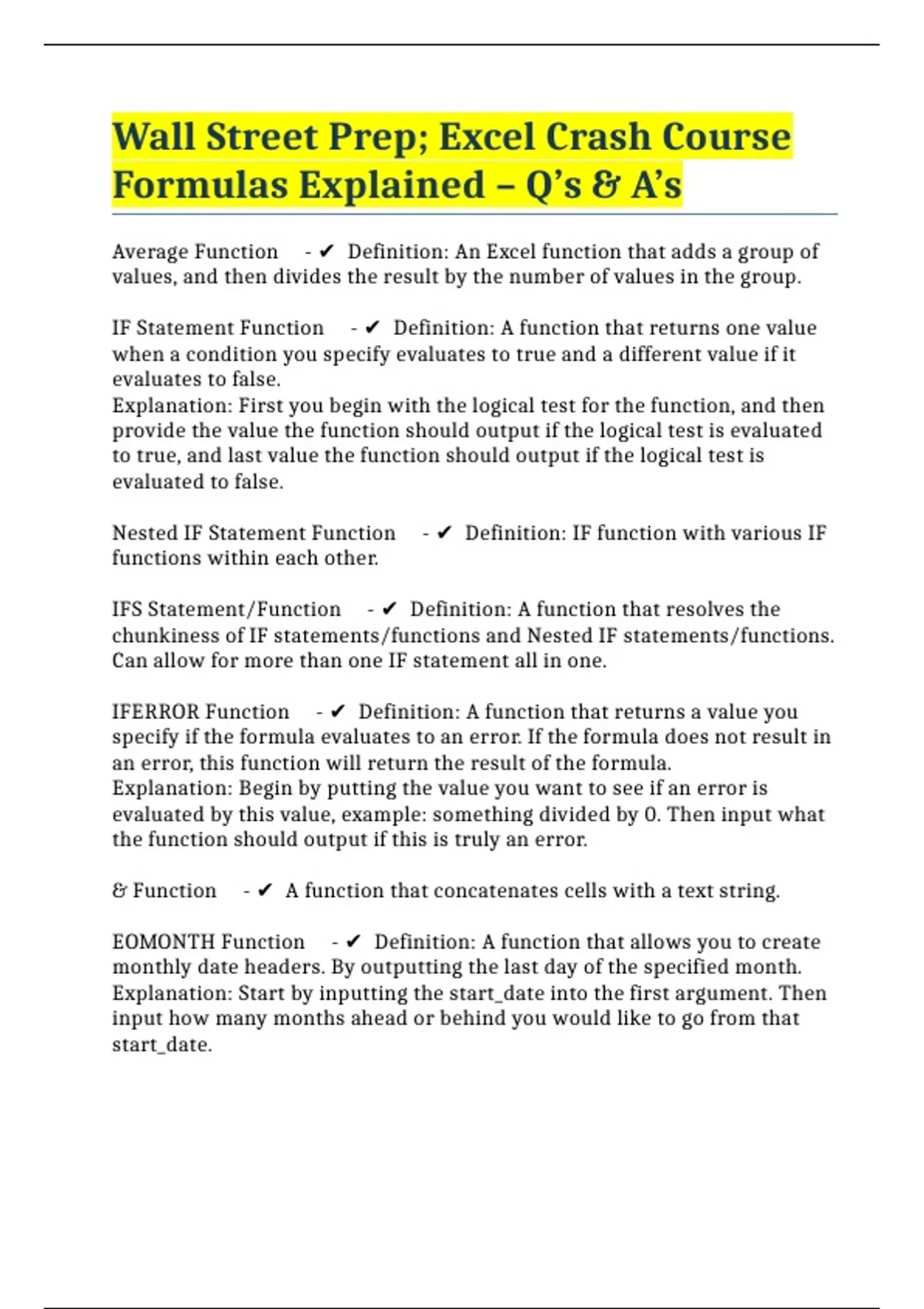 Wall Street Prep; Excel Crash Course Formulas Explained – Q’s & A’s