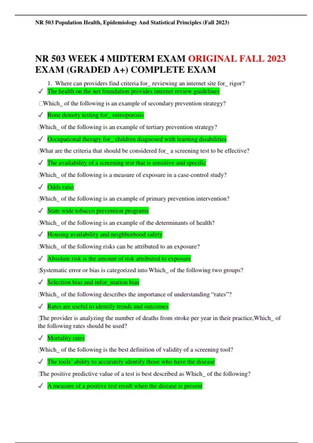 NR 503 WEEK 4 MIDTERM EXAM ORIGINAL FALL 2023 EXAM (GRADED A+) COMPLETE EXAM