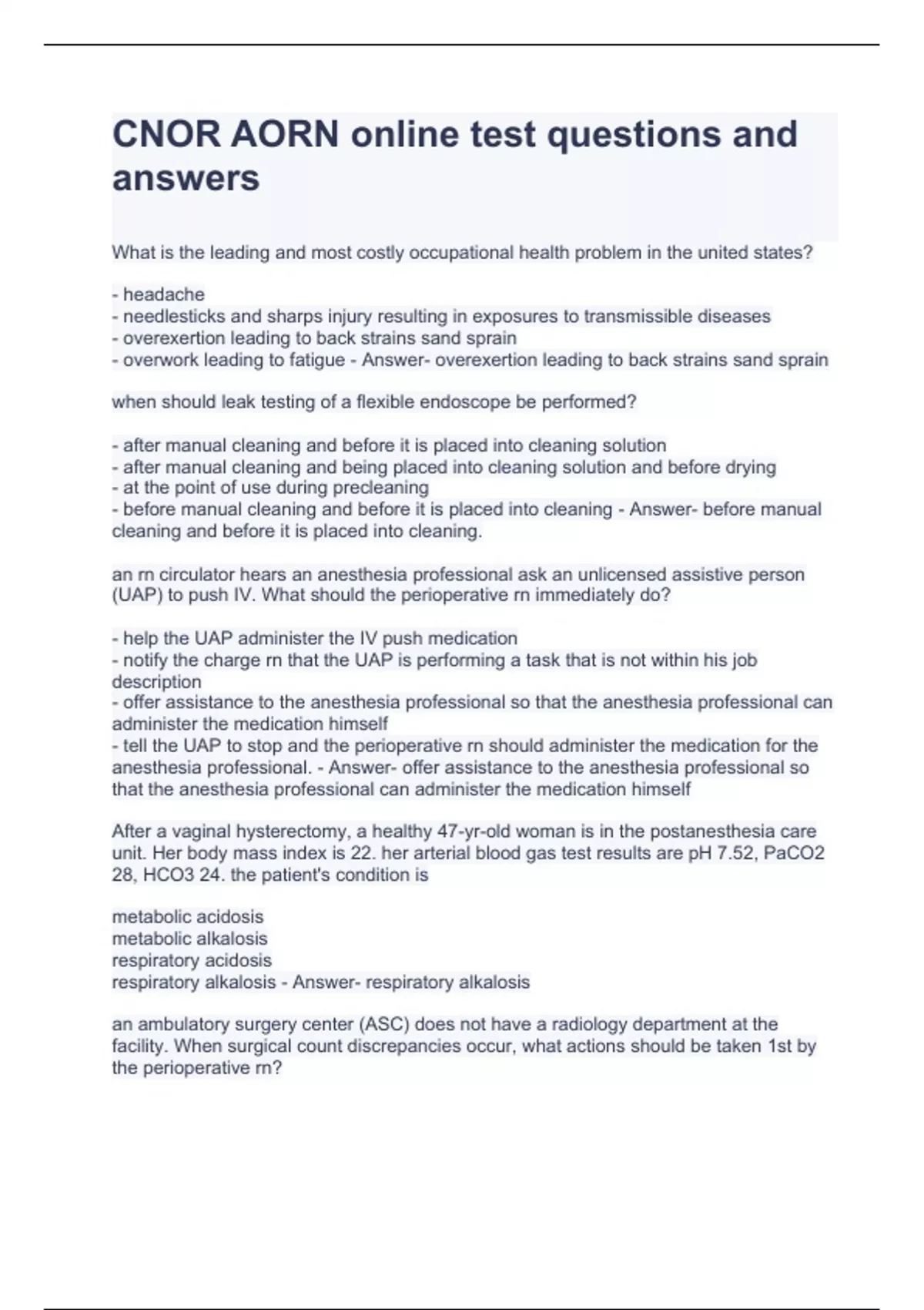 CNOR AORN online test questions and answers