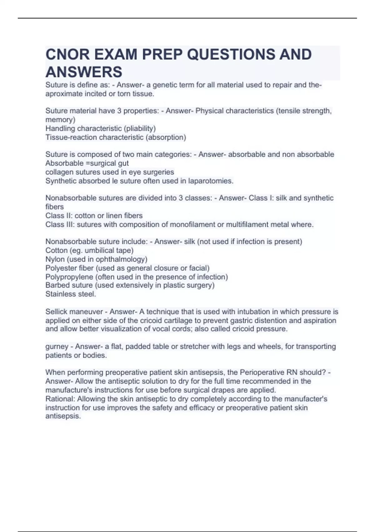 CNOR EXAM PREP QUESTIONS AND ANSWERS