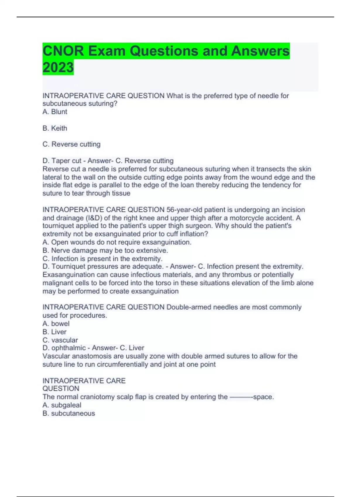 CNOR Exam Questions and Answers 2023