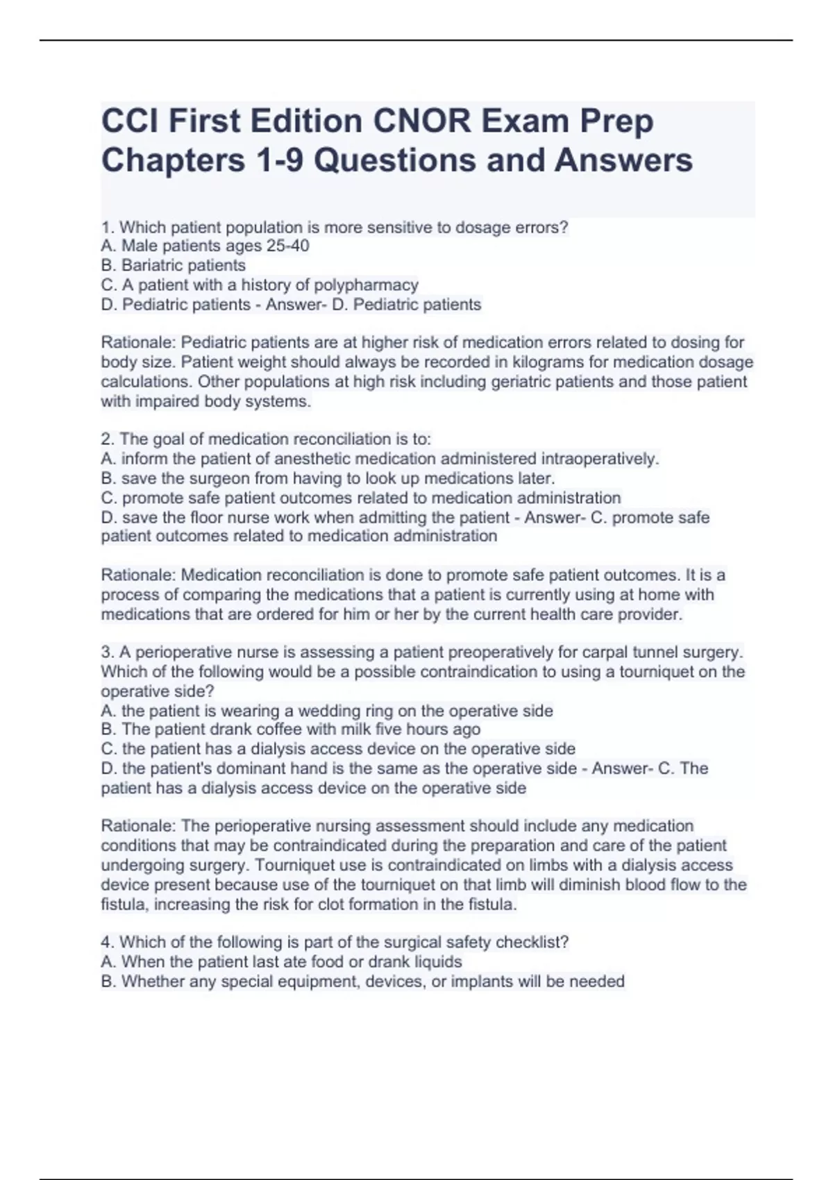 CCI First Edition CNOR Exam Prep Chapters 1-9 Questions and Answers
