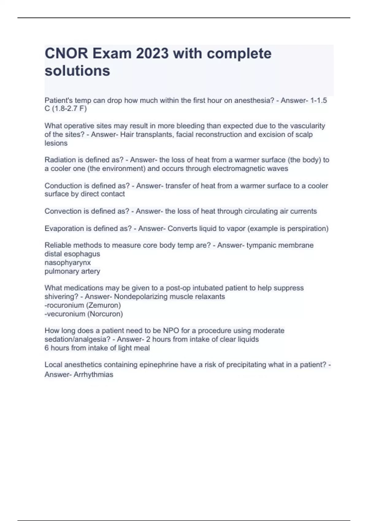 CNOR Exam 2023 with complete solutions