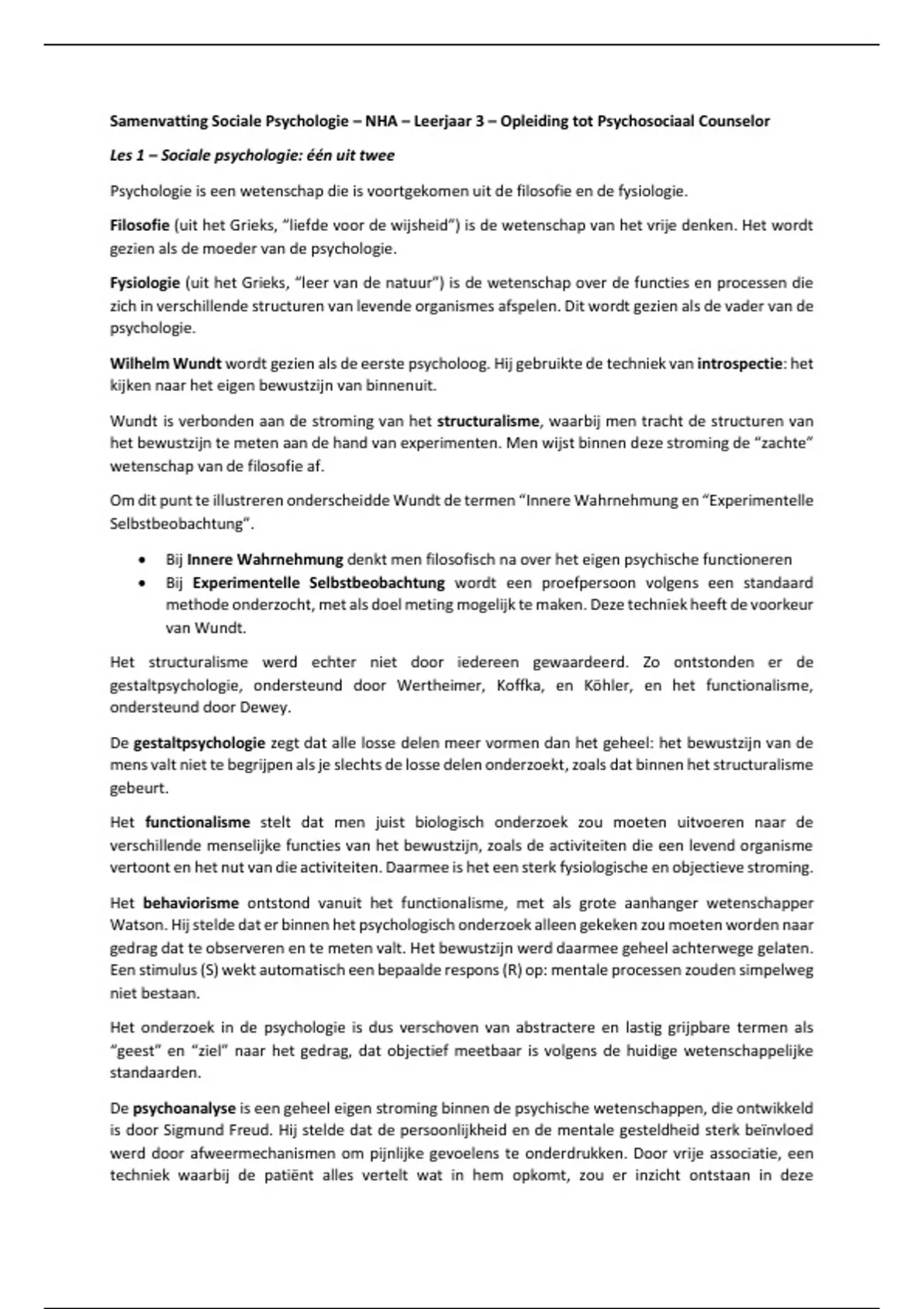 Structuralisme, functionalisme en behaviorisme zijn er vooral op gericht de psychologie