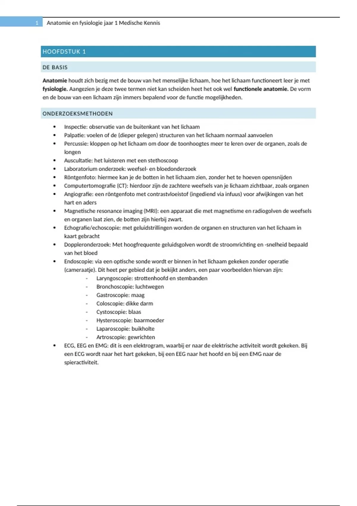 1 Anatomie en fysiologie jaar 1 Medische Kennis
