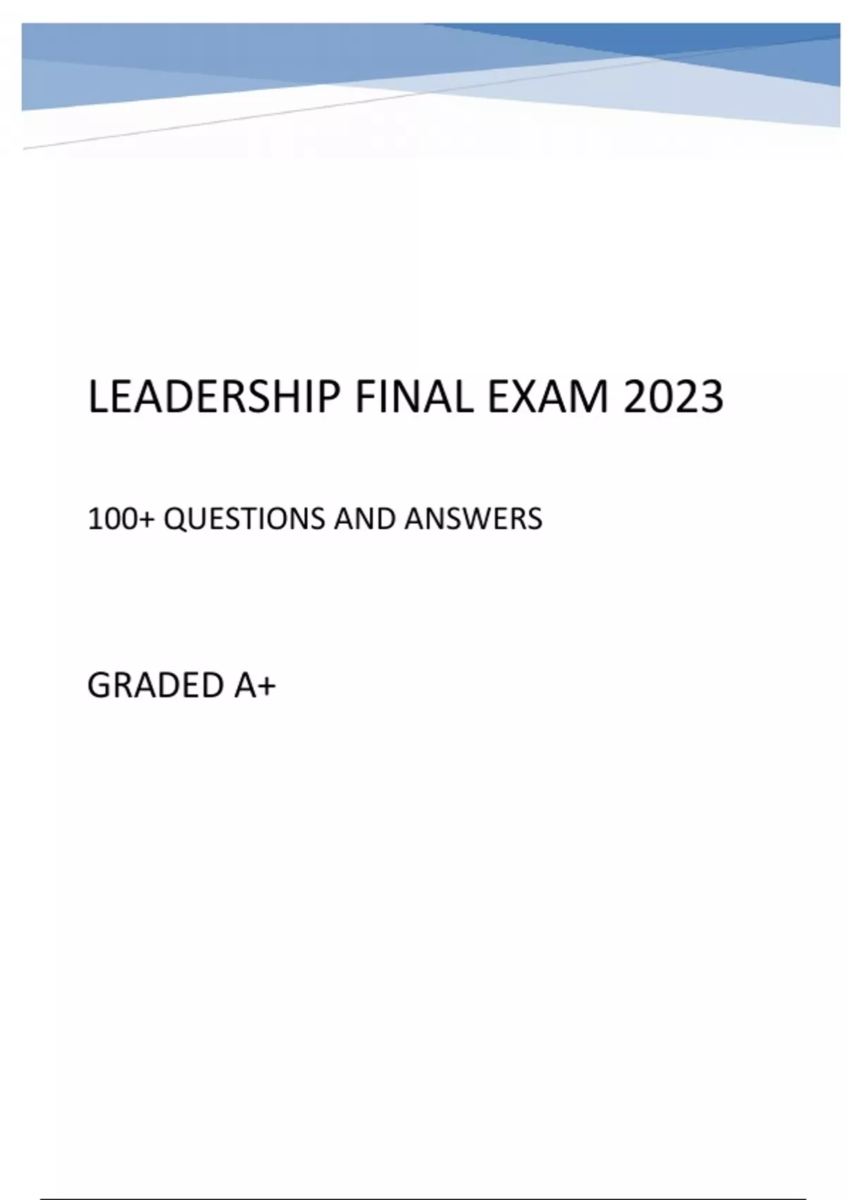 Leadership Final Exam with Verified Answers 2023. Leadership Final Exam with Verified Answers 2023. Leadership Final Exam with Verified Answers 2023.
