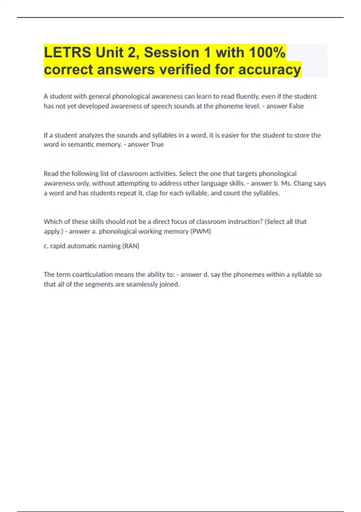 correct answers verified for accuracy