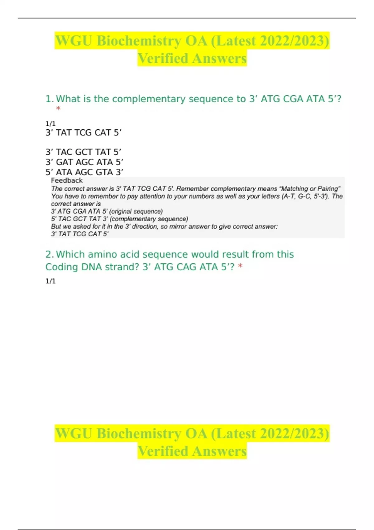 WGU Biochemistry OA (Latest 2022/2023) Verified Answers