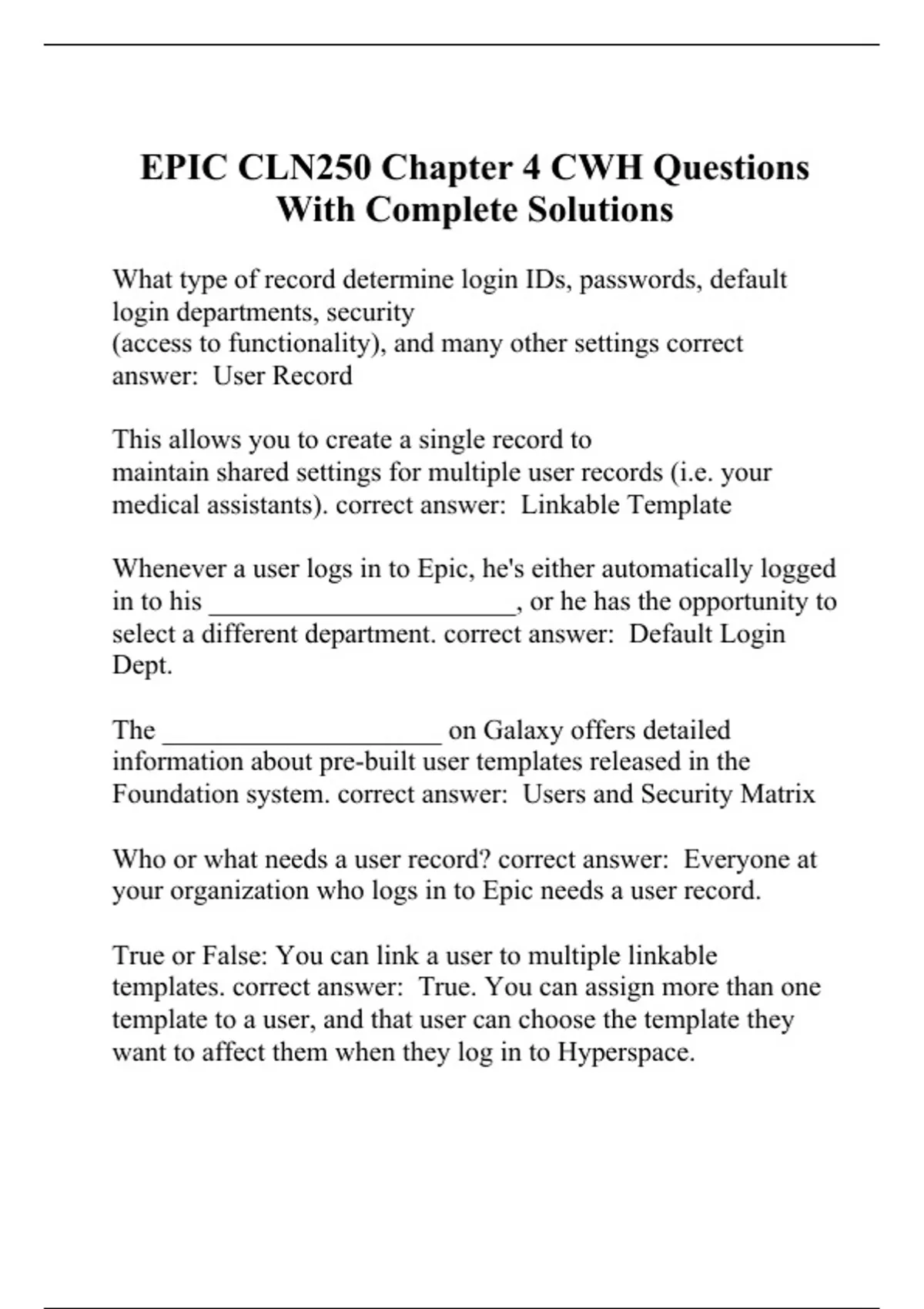 EPIC CLN250 Chapter 4 CWH Questions With Complete Solutions