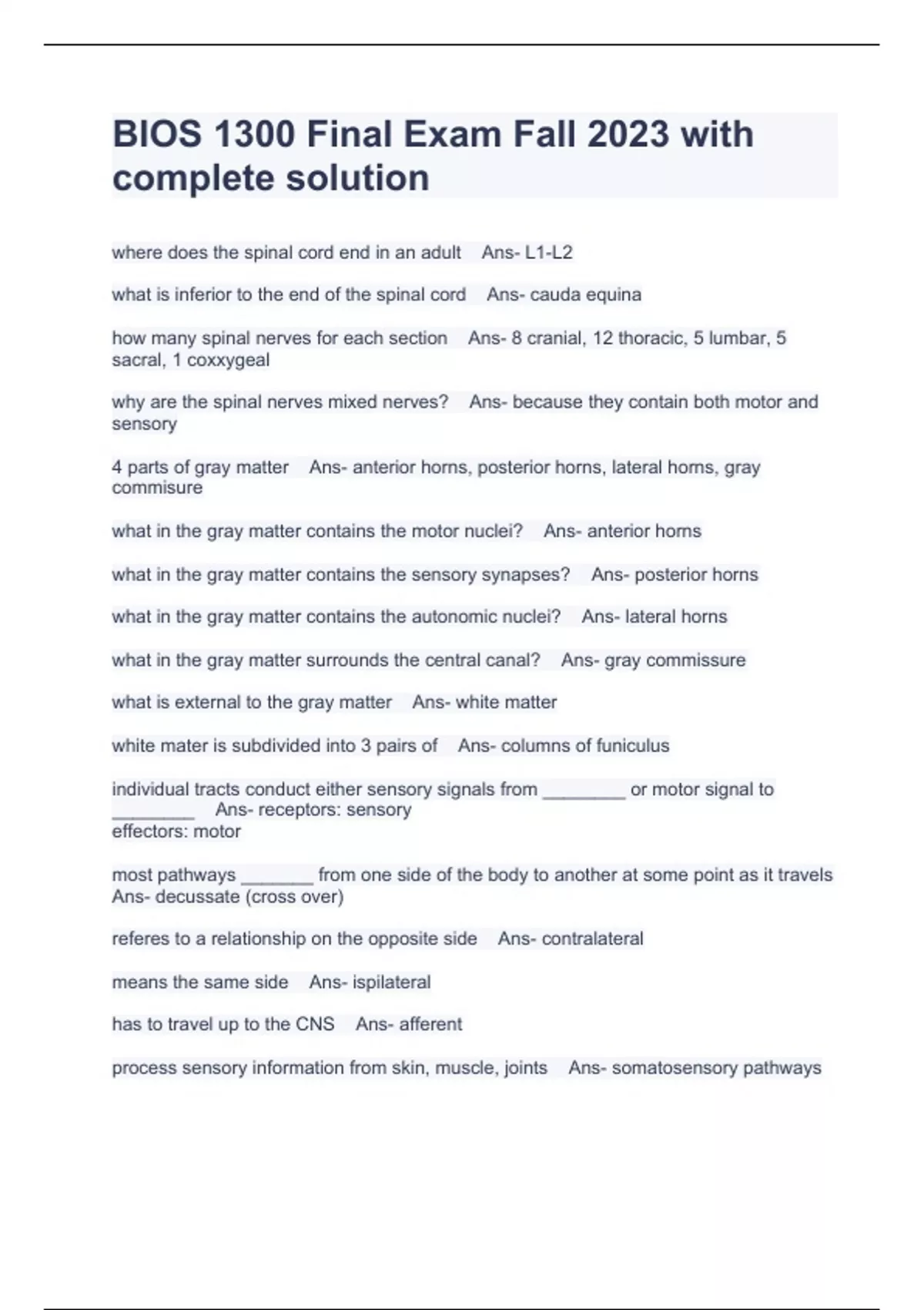 BIOS 1300 Final Exam Fall 2023 with complete solution