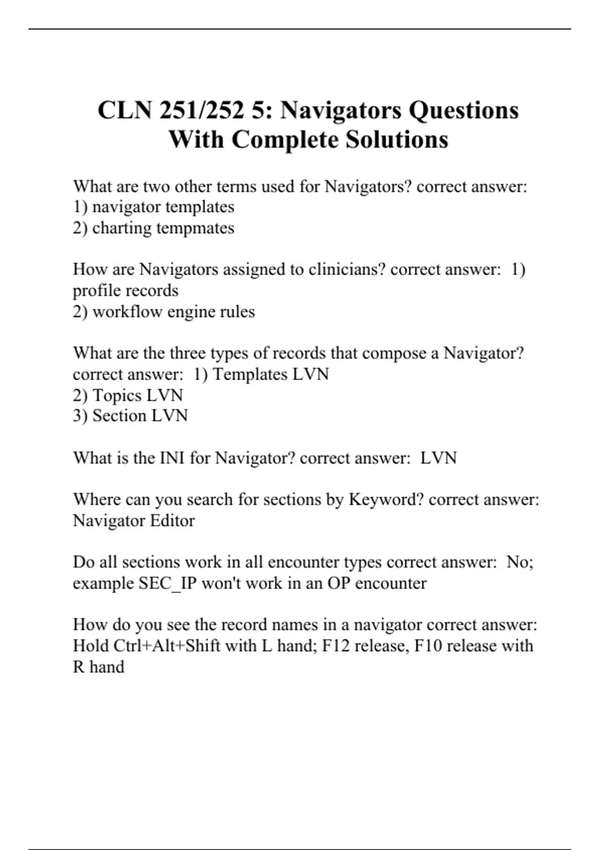 CLN 251/252 5: Navigators Questions With Complete Solutions