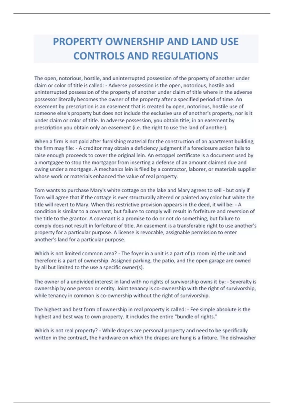 PROPERTY OWNERSHIP AND LAND USE CONTROLS AND REGULATIONS.
