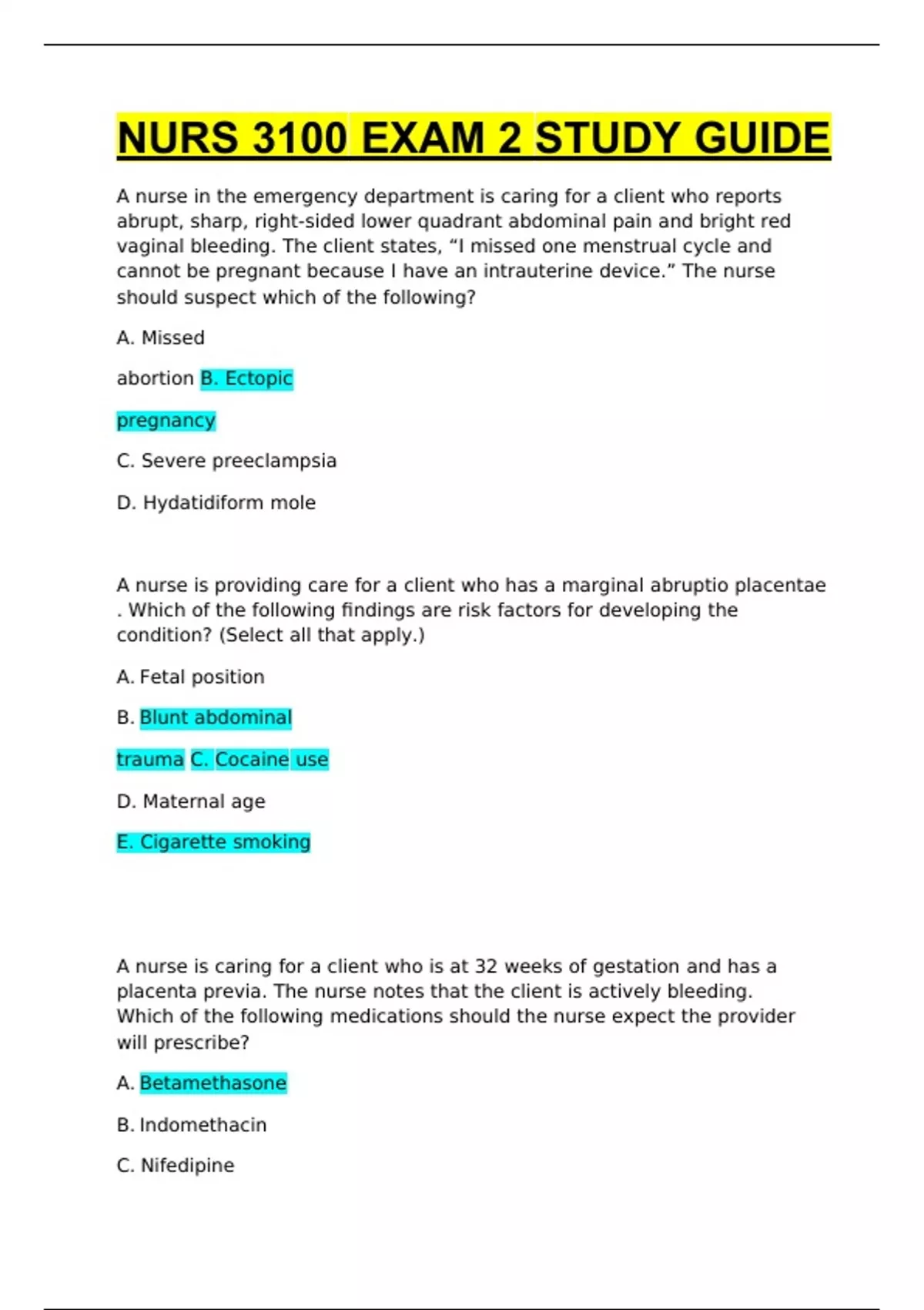 NURS 3100 EXAM 2 STUDY GUIDE QUESTIONS WITH ANSWERS GRADED A+