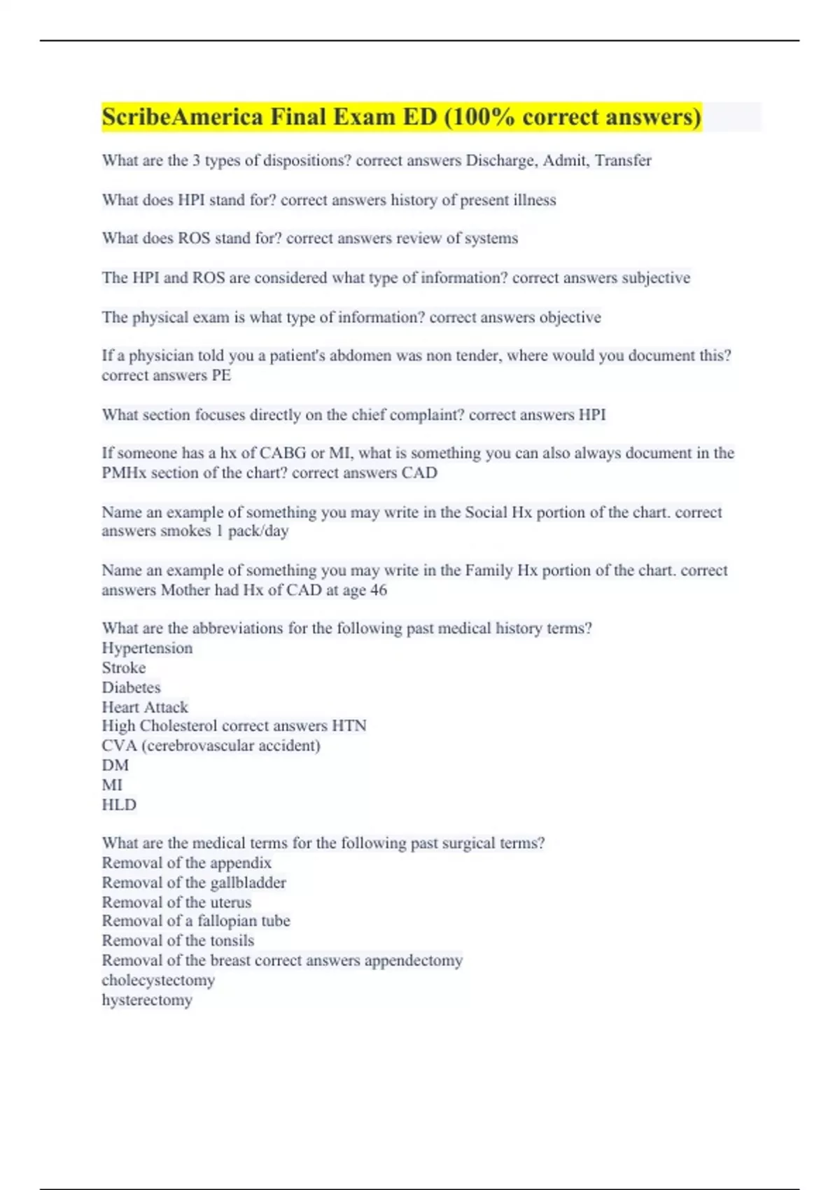 ScribeAmerica Final Exam ED (100% correct answers)