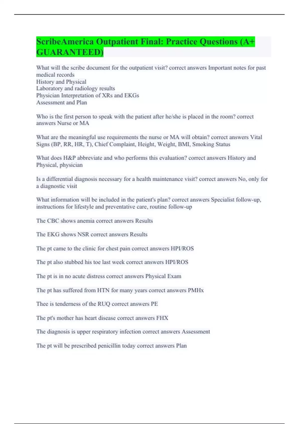 ScribeAmerica Outpatient Final: Practice Questions (A+ GUARANTEED)