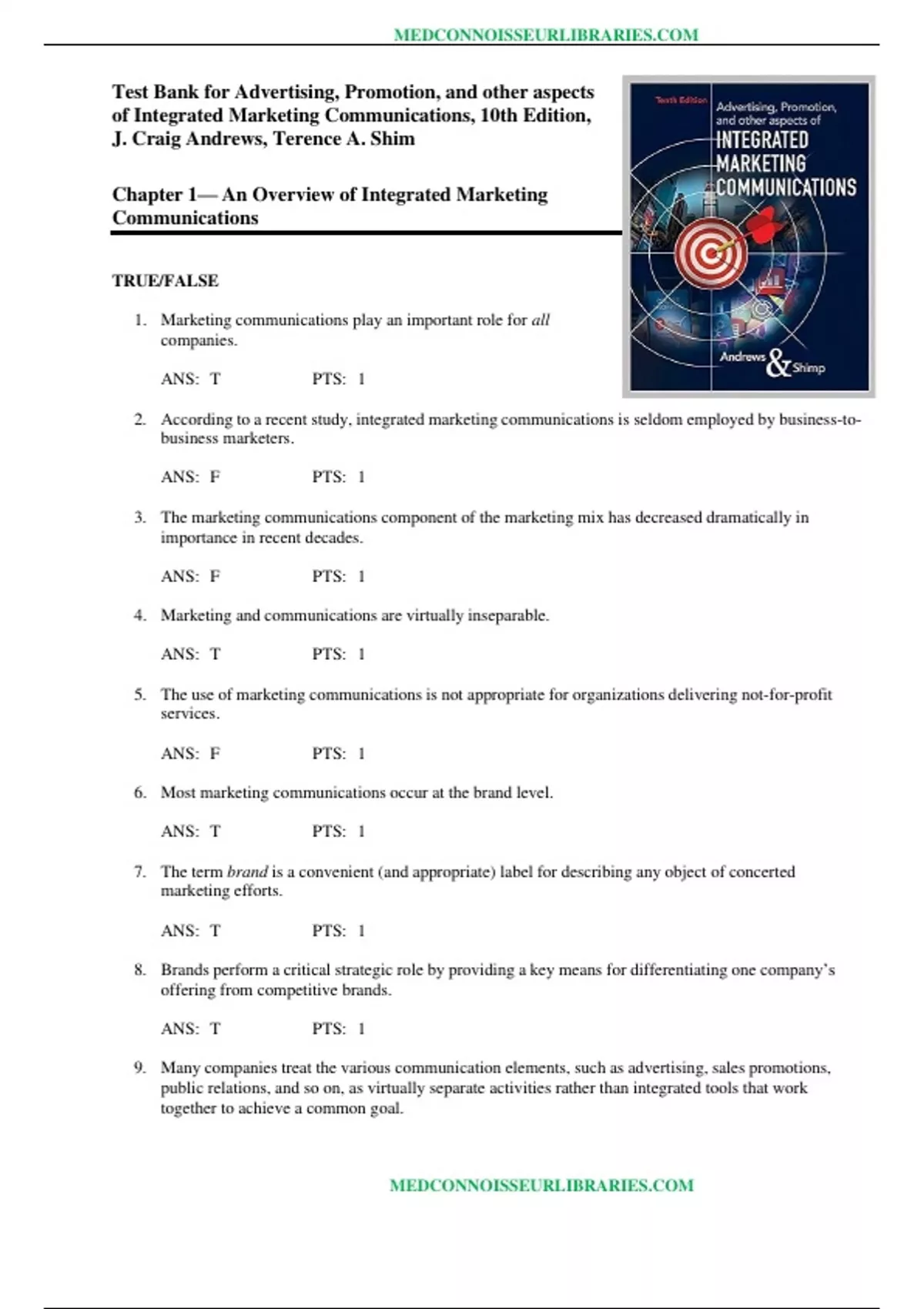 Test Bank for Advertising, Promotion, and other aspects of Integrated Marketing Communications, 10th Edition, J. Craig Andrews, Terence A. Shim Test Bank for Advertising, Promotion, and other aspects of Integrated Marketing Communications, 10th Edition, J. Craig Andrews, Terence A. Shim Test Bank for Advertising, Promotion, and other aspects of Integrated Marketing Communications, 10th Edition, J. Craig Andrews, Terence A. Shim
