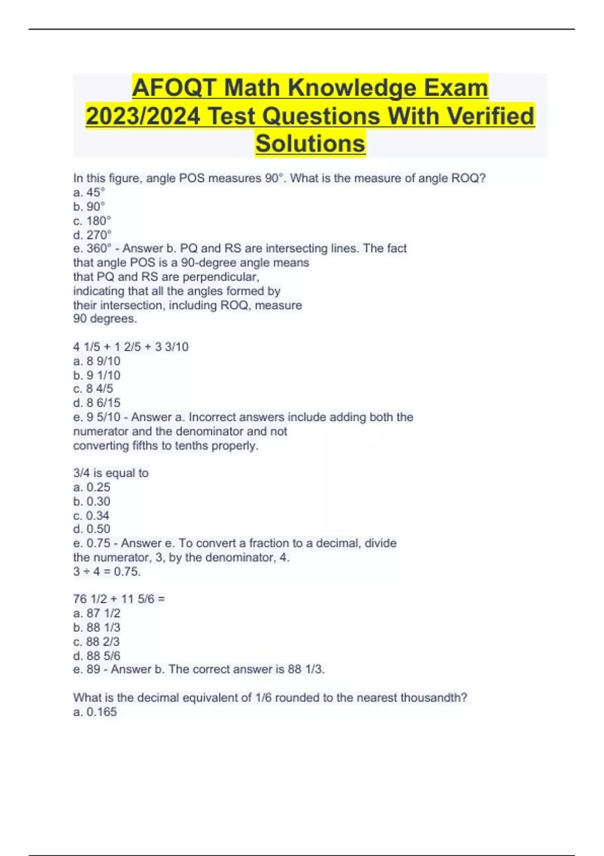 AFOQT Math Knowledge Exam 2023/2024 Test Questions With Verified Solutions