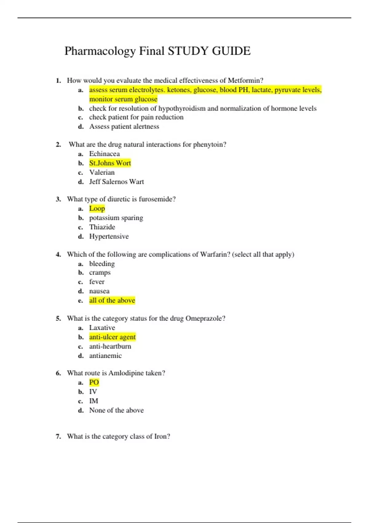 Pharmacology Final Exam Study Guide