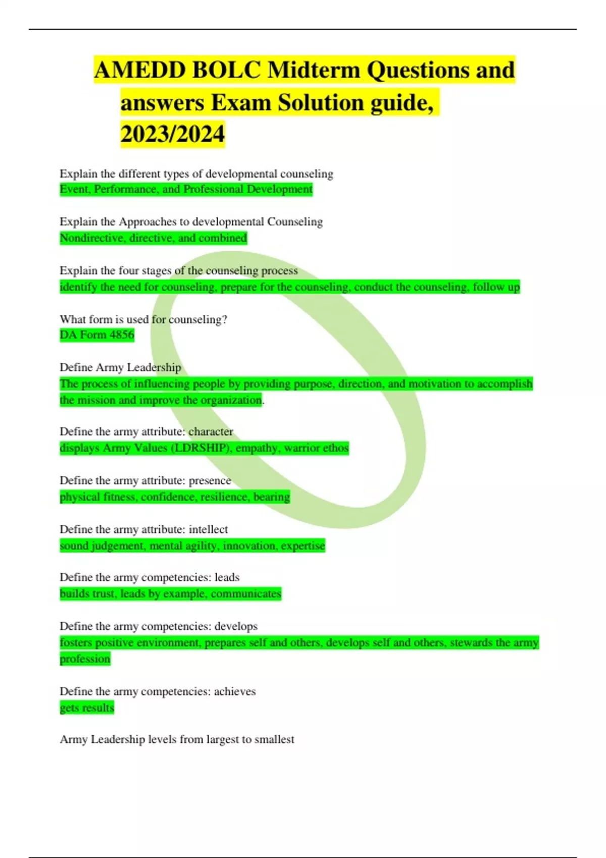 AMEDD BOLC Midterm Questions and answers Exam Solution guide, 2023/2024