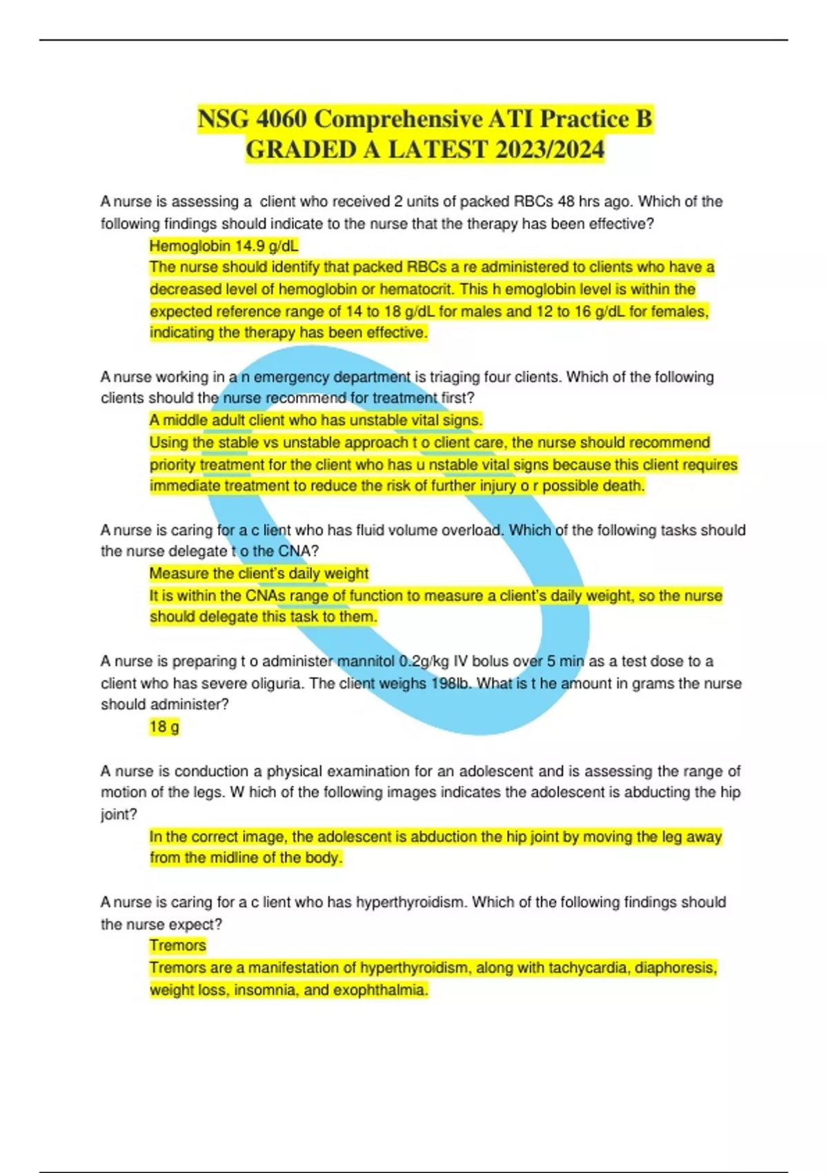 NSG 4060 Comprehensive ATI Practice B GRADED A LATEST 2023/2024