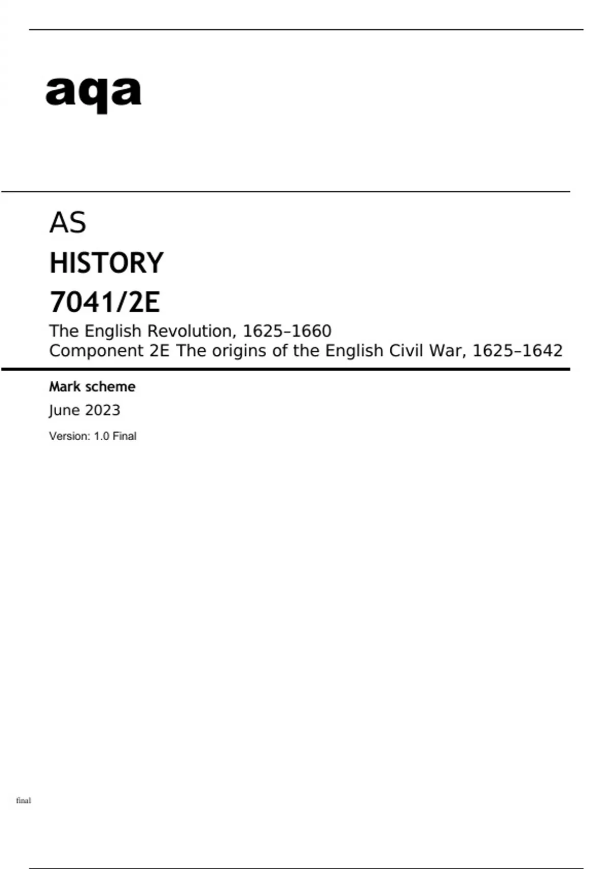 Aqa AS History 7041-2E June2023 MARK SCHEME.
