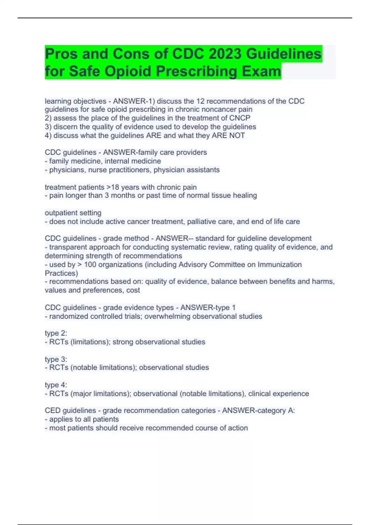 Pros and Cons of CDC 2023 Guidelines for Safe Opioid Prescribing Exam