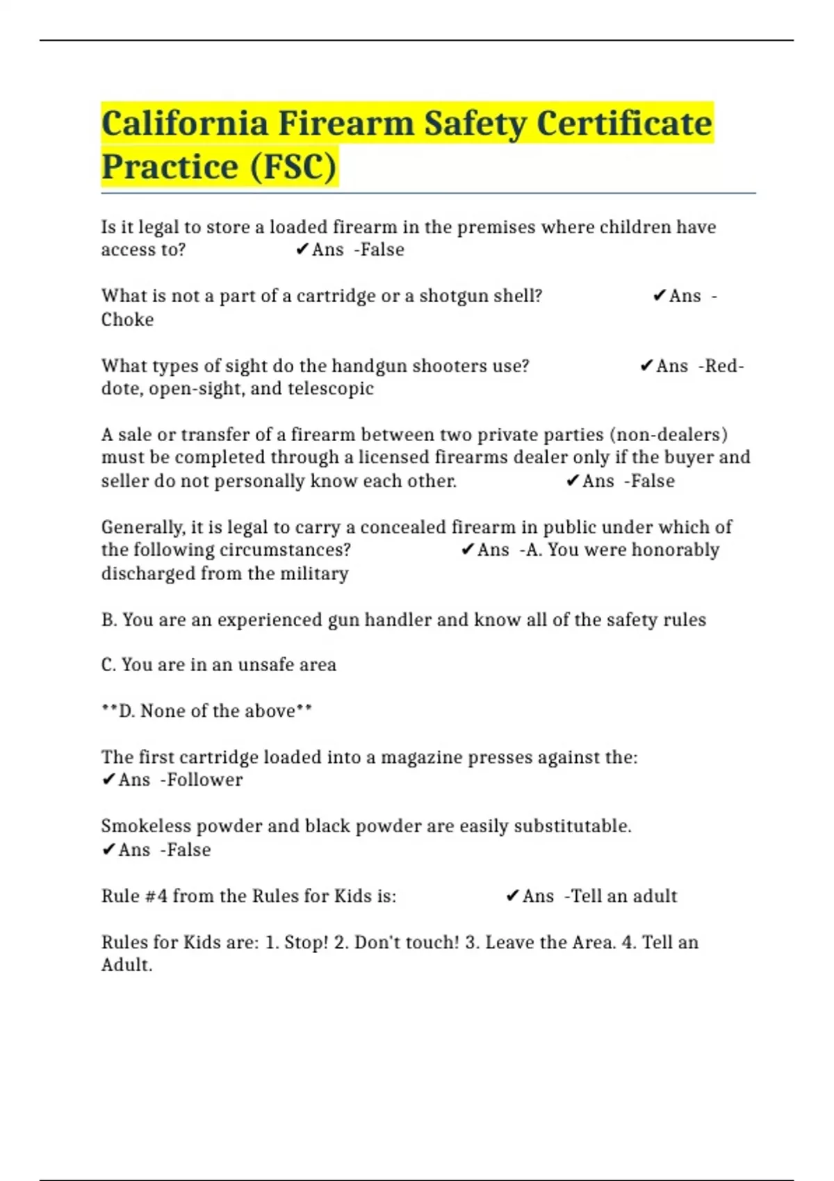 California Firearm Safety Certificate Practice (FSC)