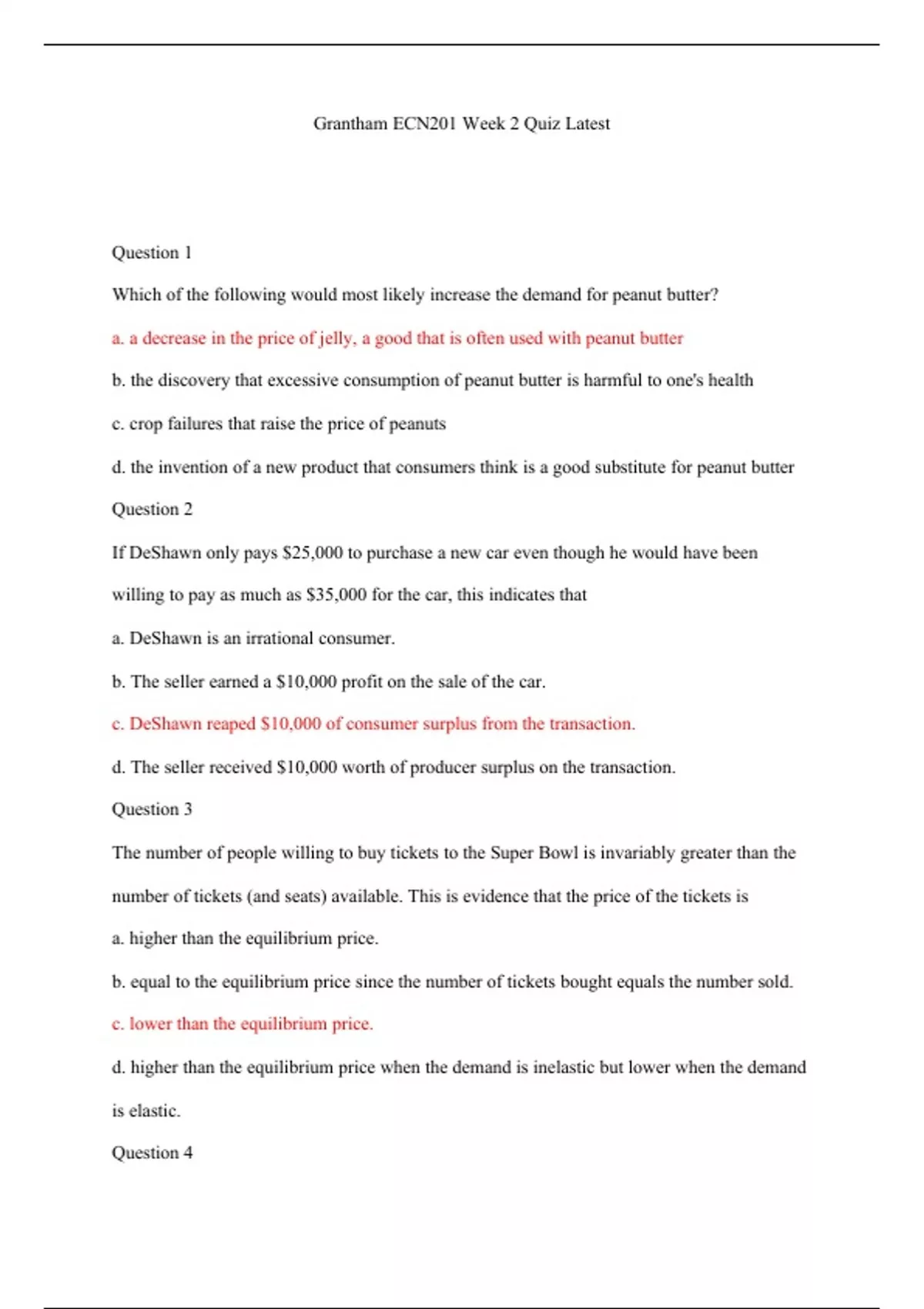 Grantham ECN201 Week 2 Quiz Latest