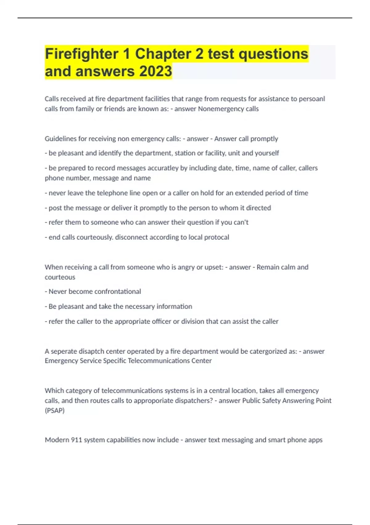Firefighter 1 Chapter 2 test questions and answers 2023.