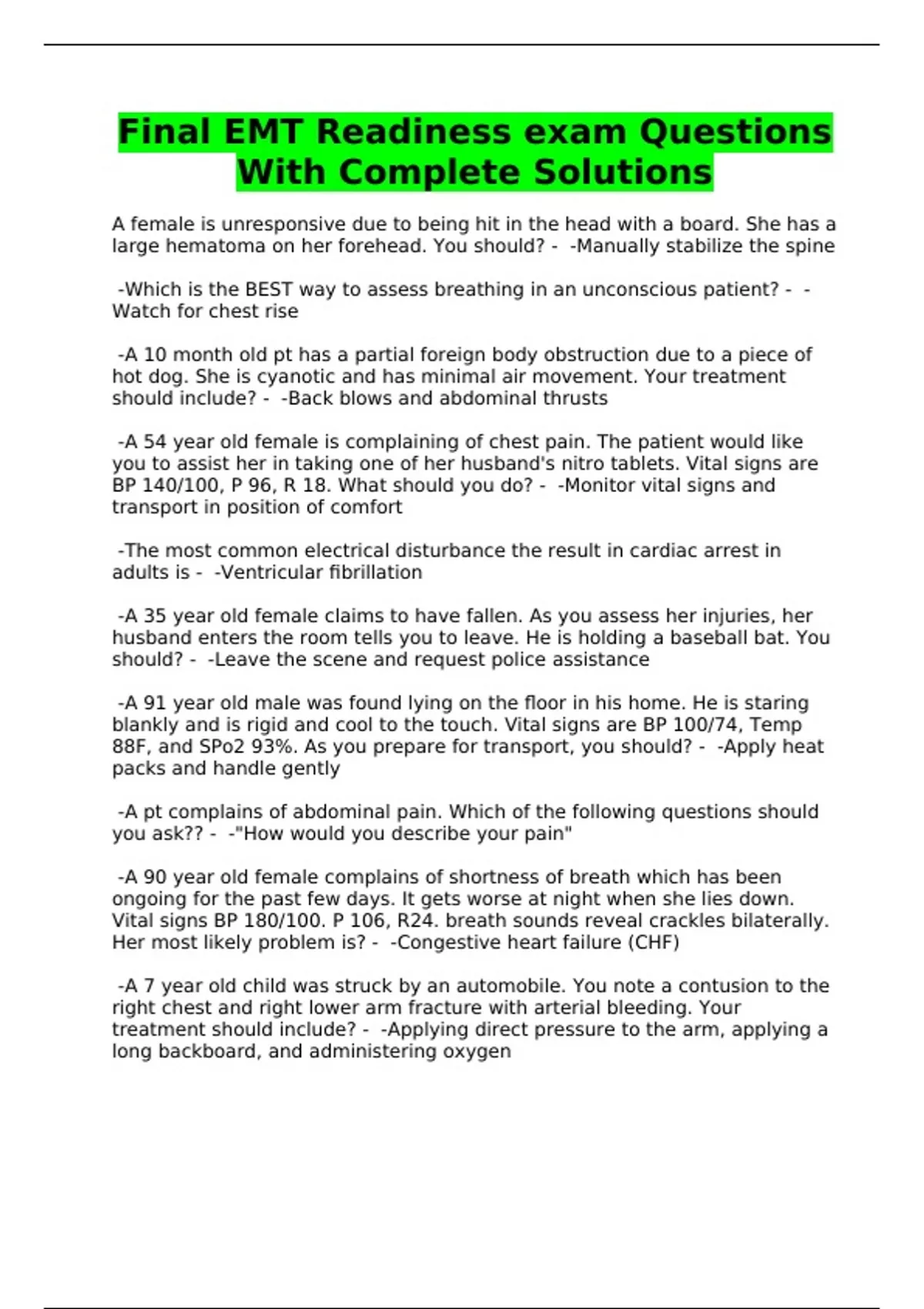 Final EMT Readiness exam Questions