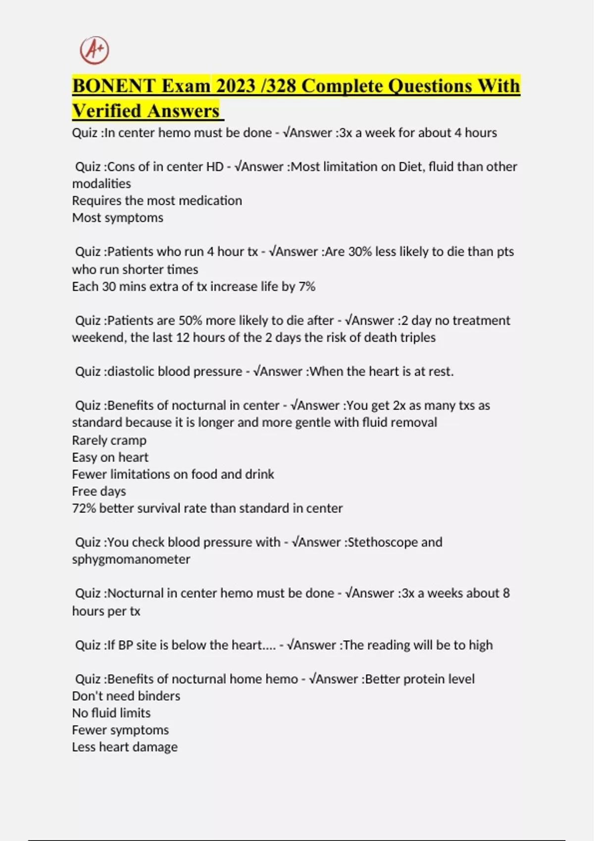 BONENT Exam 2023 /328 Complete Questions With Verified Answers