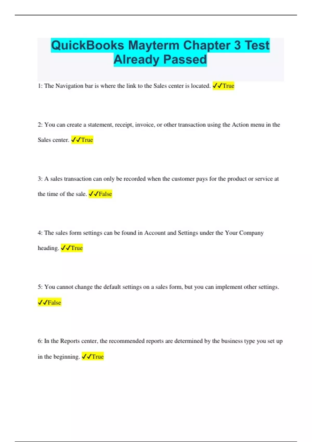 QuickBooks Mayterm Chapter 3 Test Already Passed