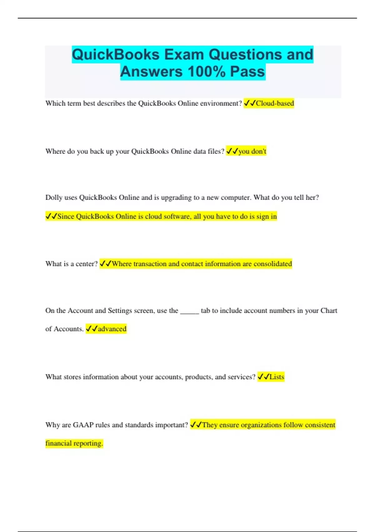 Which term best describes the QuickBooks Online environment? Cloud-based Where do you back up your QuickBooks Online data files? you don't Dolly uses QuickBooks Online and is upgrading to a new computer. What do you tell her? Since QuickBooks Online is cloud software, all you have to do is sign in What is a center? Where transaction and contact information are consolidated