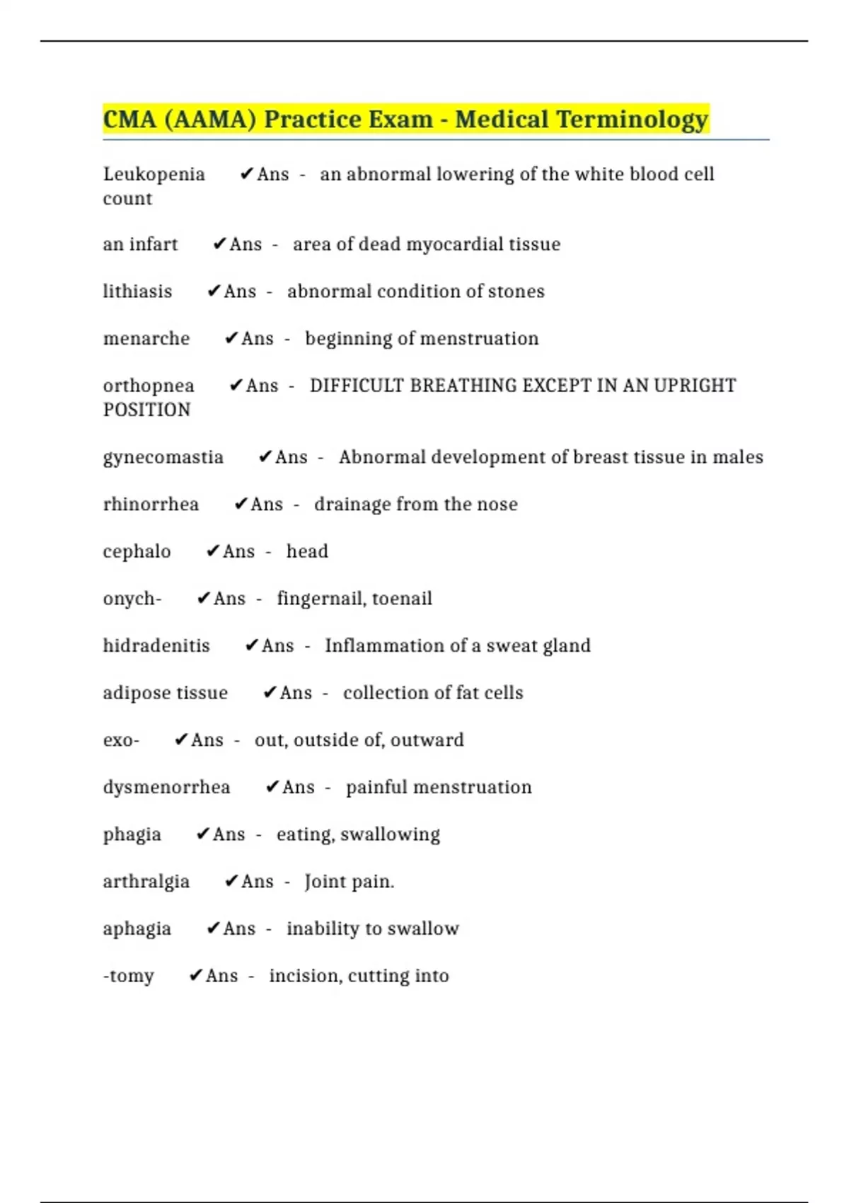 Leukopenia ✔️Ans - an abnormal lowering of the white blood cell