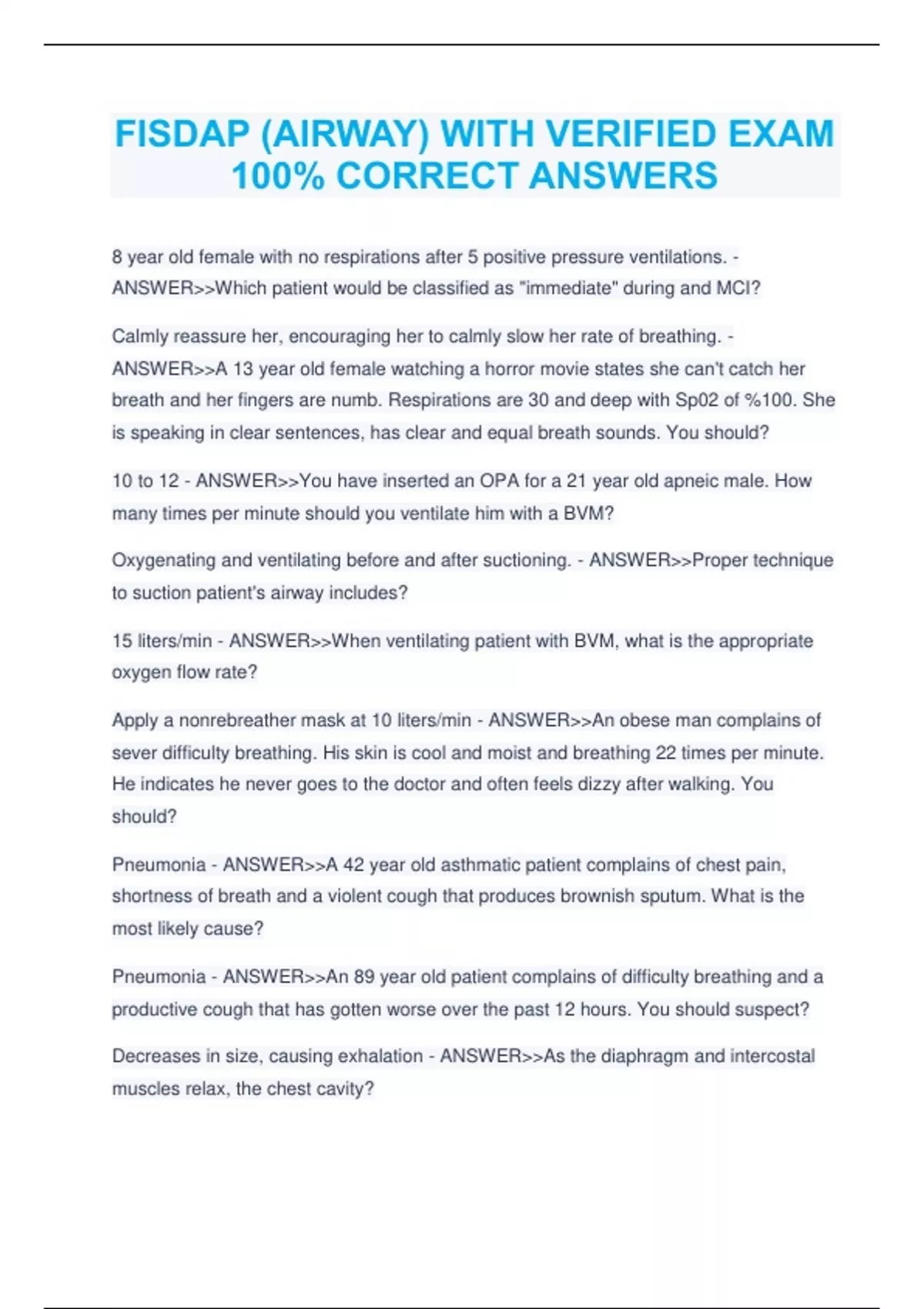 FISDAP (AIRWAY) WITH VERIFIED EXAM 100% CORRECT ANSWERS